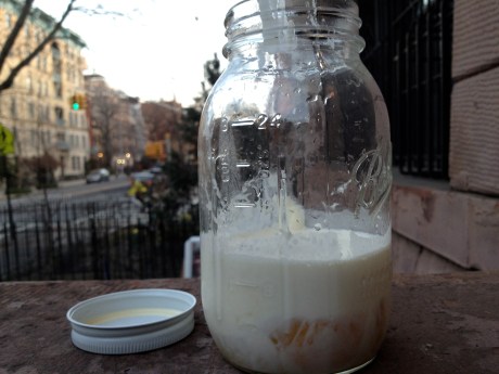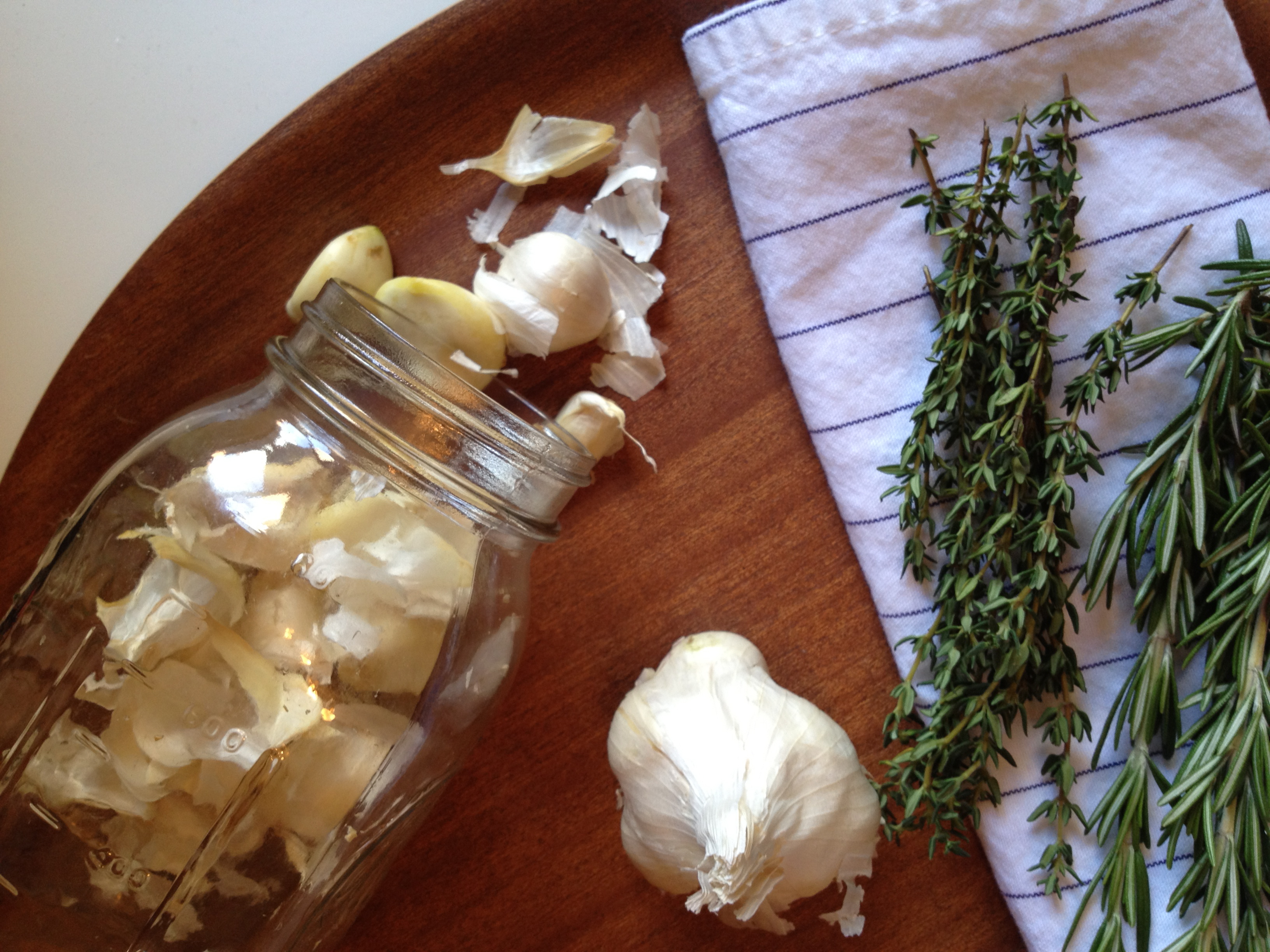 The Ball jar above is filled with cream, crème fraîche, eggs, salt, and pepper. Its final destination: the all-butter puff pastry, to be filled with caramelized garlic, two types of goat cheeses, rosemary and thyme. In the words of a friend, “I do.”