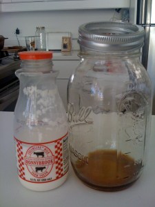 Kate’s version of coffee for the warm months involves brewing some very strong coffee, then diluting with cold water and ice cubes. Add to that Grade B (the darker kind) VT maple syrup, to taste, and whole milk or cream. (Kate uses raw milk she gets from a local farm, which is legal in VT if you buy it on the grounds of the farm.) Stir, and serve in a pint glass (if you’re lucky from Otter Creek Brewery). Enjoy while petting a pig or collecting eggs from the chicken coop. This should go down in food history along with Vietnamese Coffee or Thai Iced Tea.