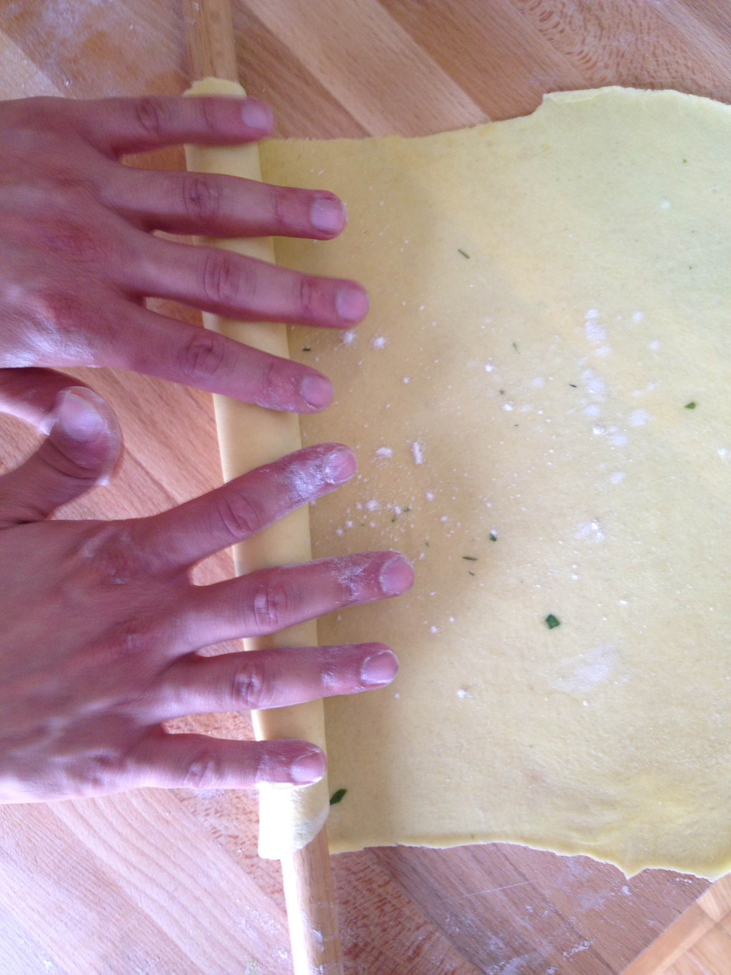 Working with 1 coil at a time, roll out on an unfloured surface to 10″ rounds, no more than 1/8″ thick. Stack as you go, separating with parchment paper brushed with oil to make things easier.