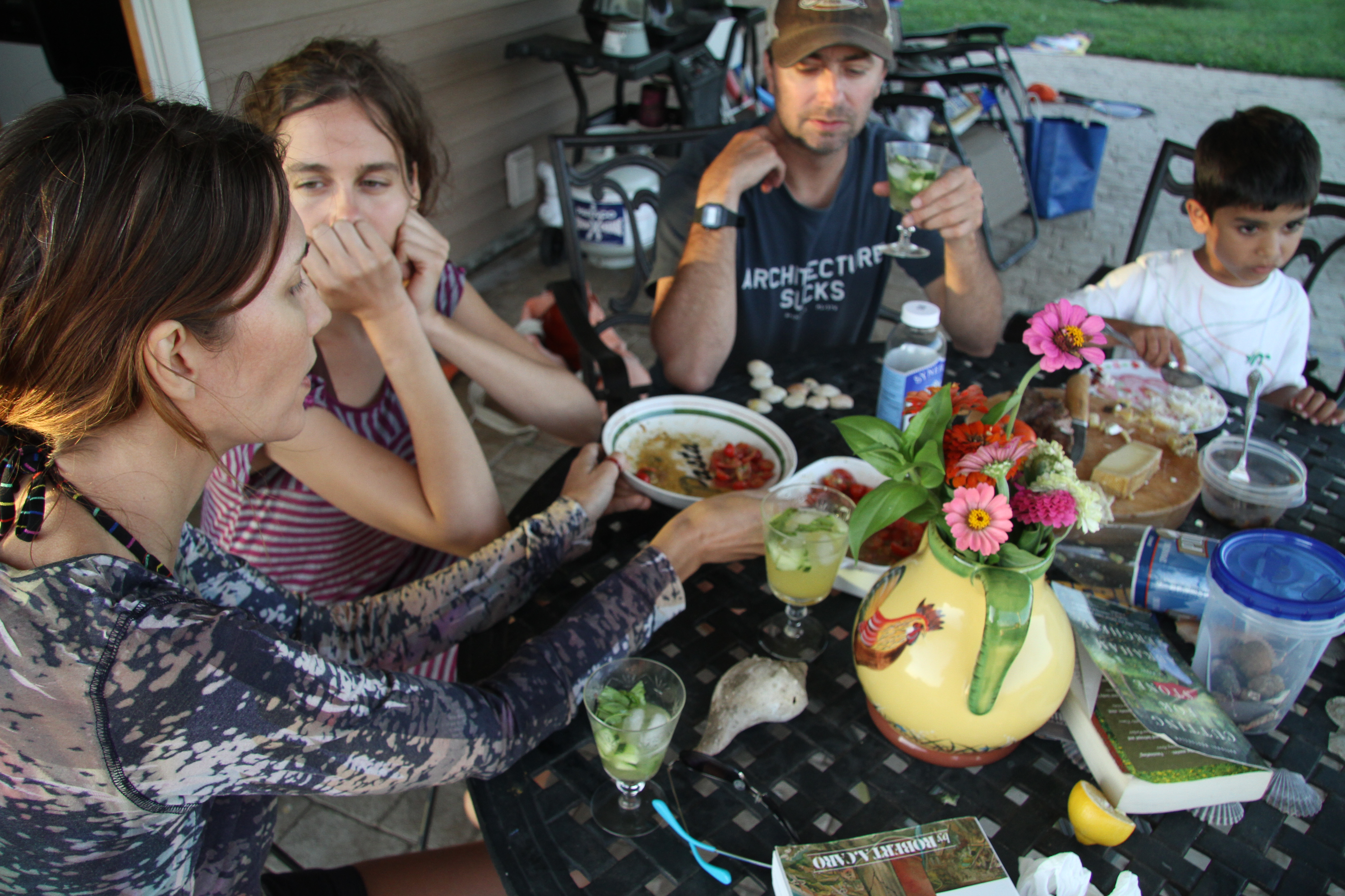 A friend came by and said, “you’re canning!” And so I was. Sort of. But I think of it more like cheating – preserving the rich flavors of summer without spending days on a factory line in my kitchen. It took all of a couple of hours to fill four Ball jars this weekend. I know that won’t get me through the winter, let alone fall. September? Maybe.