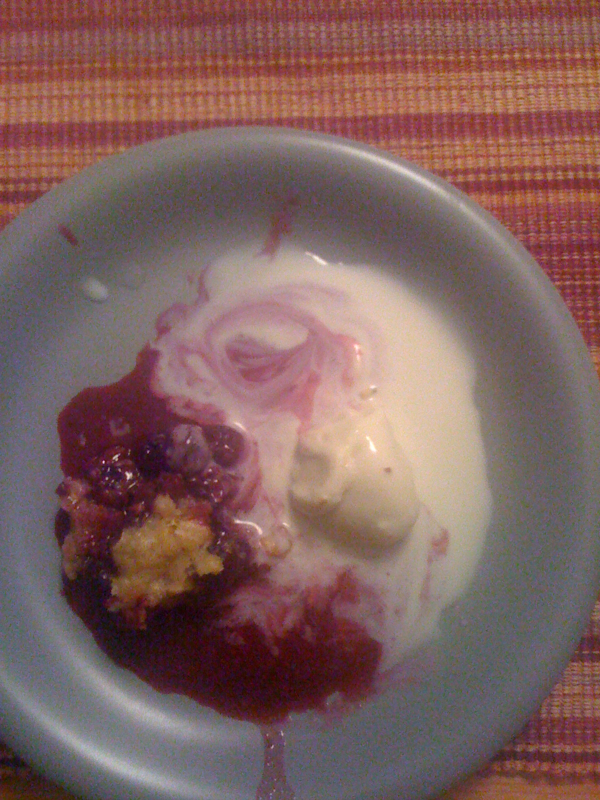 The blueberry was a hit. I’d still like to try this in a few weeks with the season’s rhubarb but I will definitely make this version again.