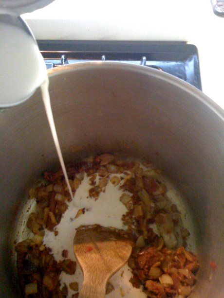 4. Transfer the purée mixture to a large pot on the stove, stirring in the coconut milk and rest of the broth. Let simmer on medium-high heat for 10-15 minutes, adding the spices and seasoning to taste. Serve with the toasted seeds, and, if you’d like, a dollop of crème fraîche. I also served with a salad of green Boston lettuce, pears, walnuts, sliced grapes, and an olive oil-tahini dressing. If I had blue cheese, that would’ve been in the salad too.