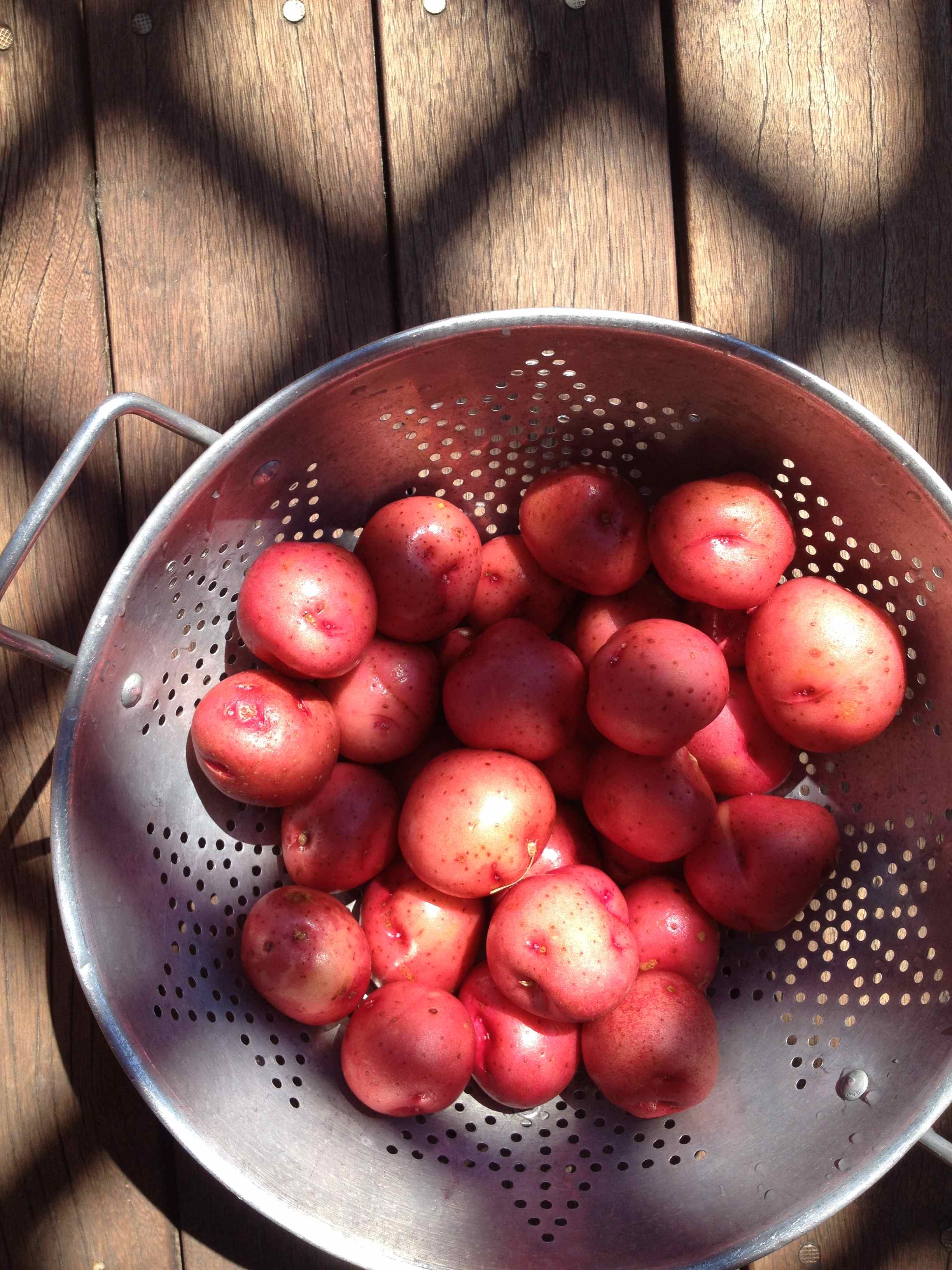 Before arriving last week I told my stepmom Bonnie that I wanted to make a French potato and green bean salad, like the one David Tanis wrote about recently in the New York Times. Think of it like an improved upon summer potato salad, with a mustardy vinaigrette instead of mayo, tossed with green beans, olives, and lots of fresh herbs. I made it Vermont-style, meaning, whatever Bonnie had in the garden and local eggs. From the garden I picked chives, purple and green basil, thyme, and flat-leaf parsley. I wish I’d remembered to toss in the remaining scapes we had, but used garlic instead. This salad can be prepared ahead and served room temp or cold, perfect for a summer picnic or barbecue.